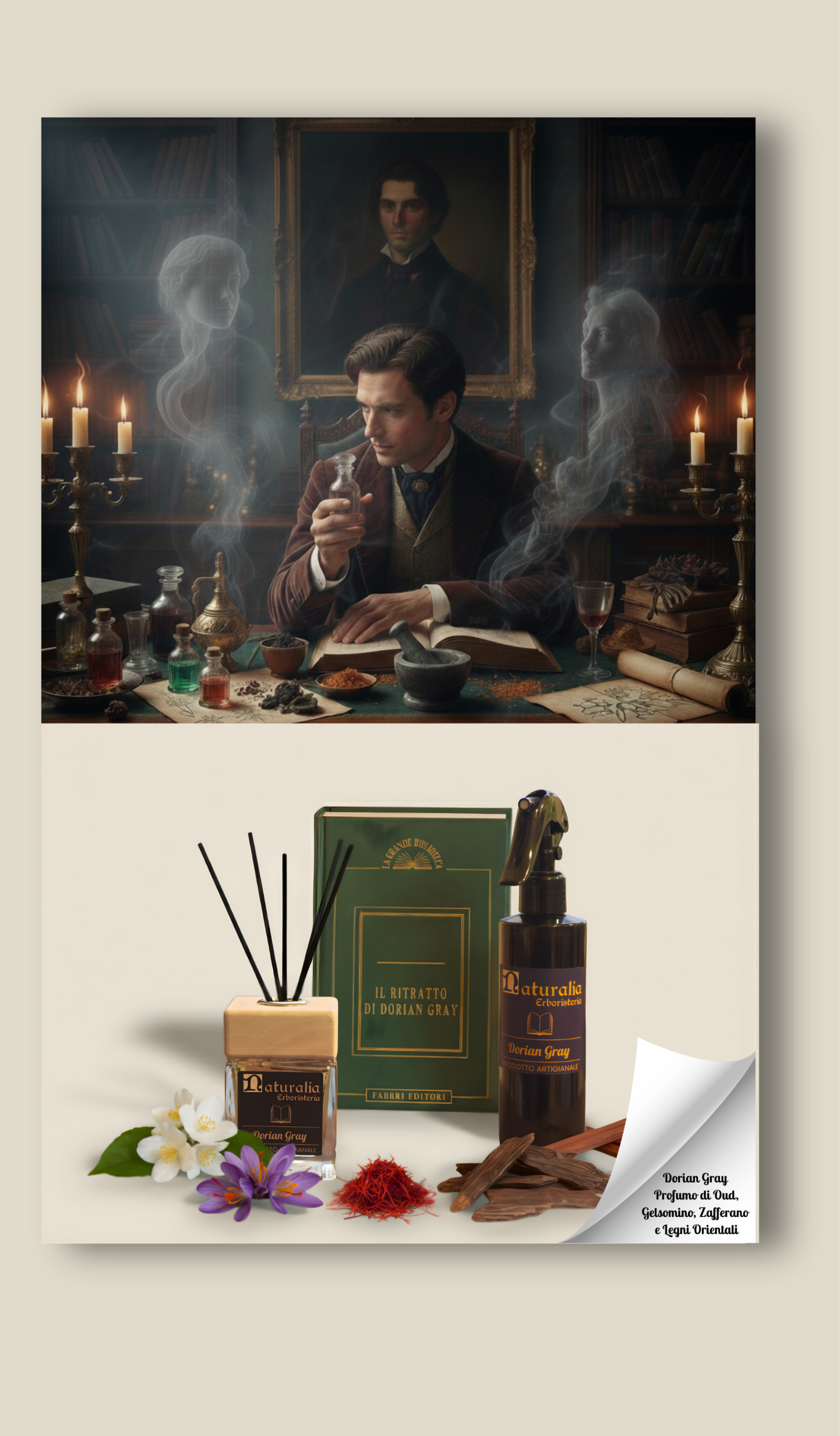 L’osmanto porta con sé questa nota luminosa e autunnale, il gelsomino aggiunge la purezza brillante delle notti chiare, l’ambra offre un calore segreto, come una luce che pulsa dietro un velo di seta.